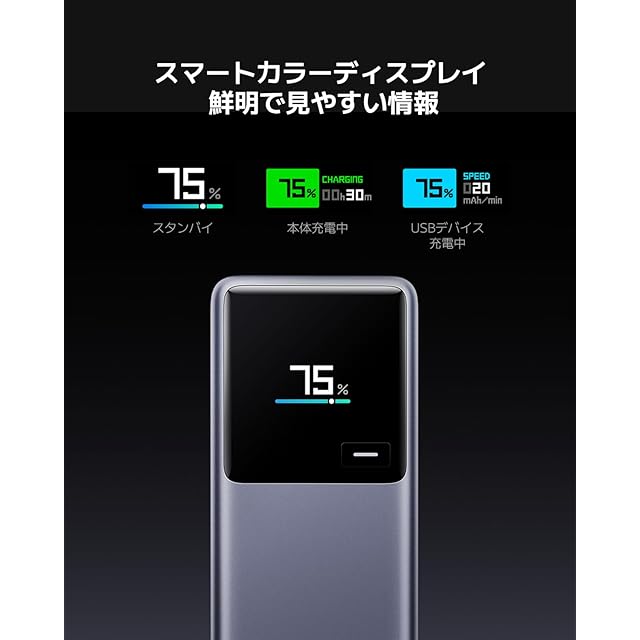 【スマートカラーディスプレイ】ハイテクな外観のインターフェイスに、情報が色で区別され、 充電の詳細情報が簡潔に読みやすく表示されます。