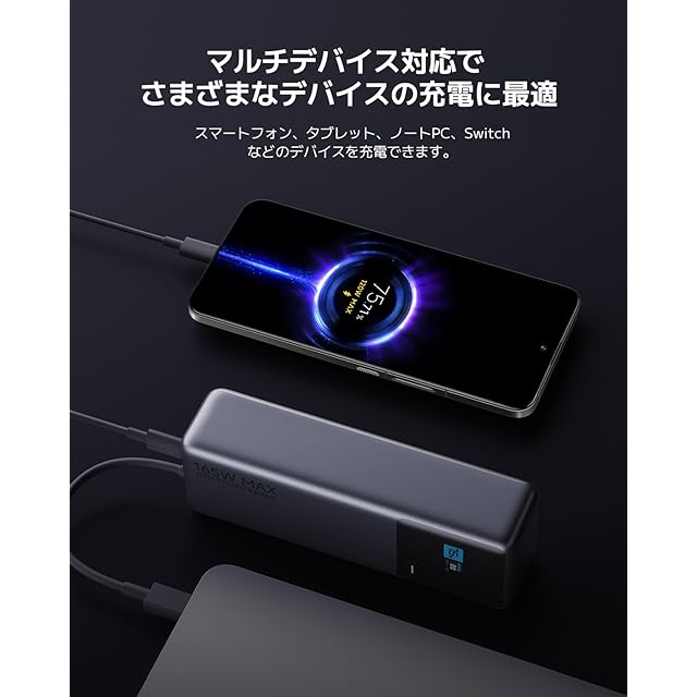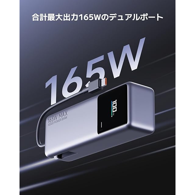 商品名:Xiaomi 165W Power Bank 10000【最大出力165W 2台同時超高速充電】USB-Cケーブル内蔵 小型 大容量 本体90W急速充電 カラーディスプレイに充電情報表示 PSE認証済 iPhone/iPad/Android各種スマートフォン、タブレット、ノートPC、Switchの充電対応 旅行/出張/アウトドア/停電/防災緊急用