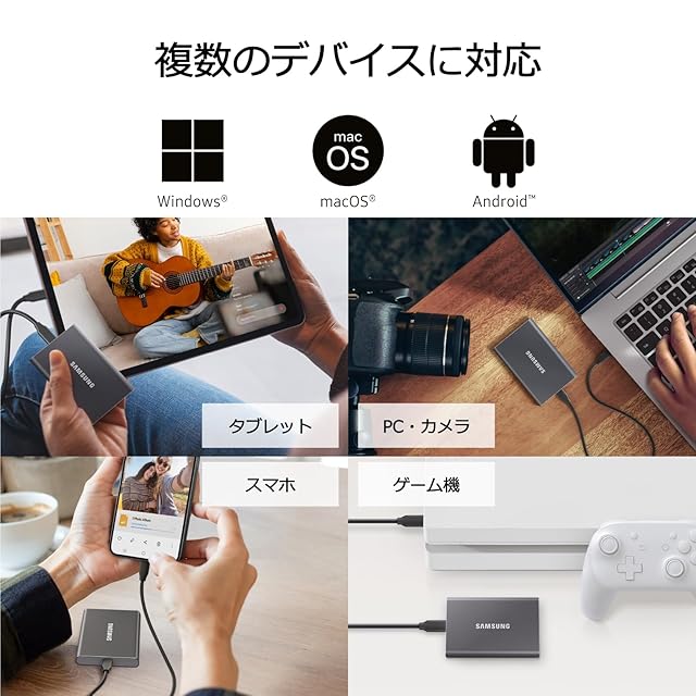 商品名:Samsung T7 4TB 外付けSSD 最大転送速度1,050MB/秒 USB3.2 Gen2(10Gbps, Type-C) グレー iPhone15シリーズ動作確認済み MU-PC4T0T-PD/EC 国内正規品【特典付モデル】