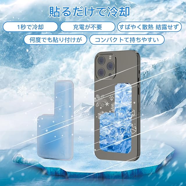 商品名:スマホ専用 冷却パッド 過熱防止 PCM素材 28℃以下で自然凍結 熱吸収最大8.6℃ 持続時間120分 結露しない 繰り返し使用可 コンパクト iPhone/Android/iPad/Switch 適用 (増量 2個入り)