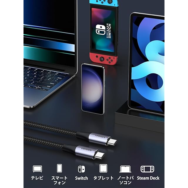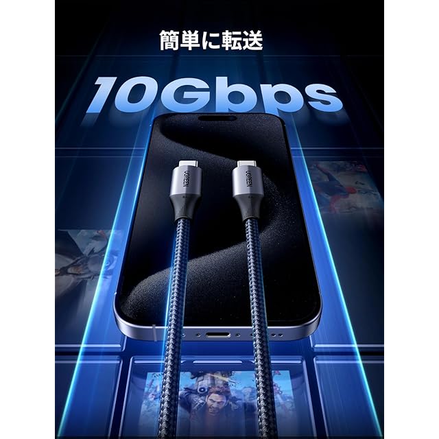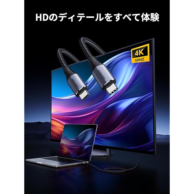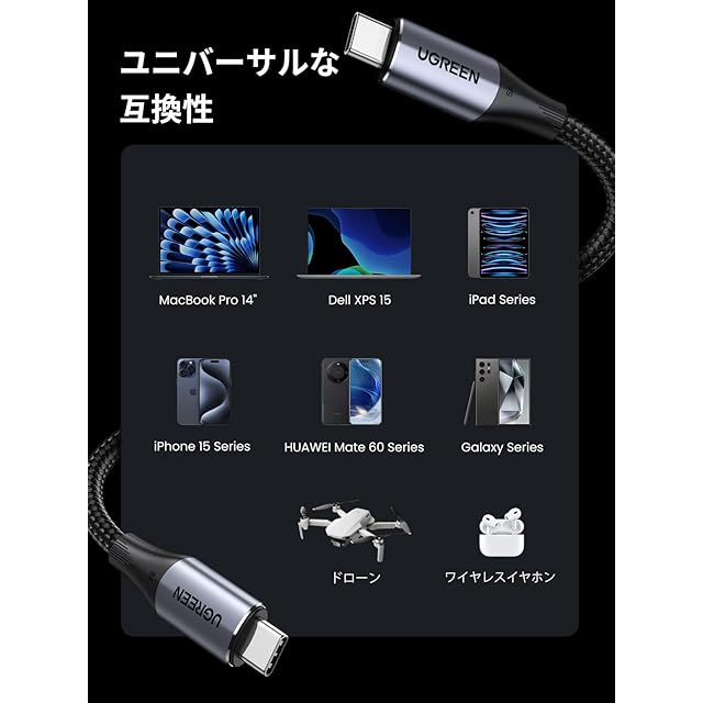 商品名:UGREEN USB C ケーブル 240W/5A Type C Cable USB 3.2 Gen 2対応 【4K / 60Hz映像出力】10Gbps 高速転送 ビデオ出力 PD3.1急速充電 タイプC コード iPhone 16/MacBook/iPad/Galaxy S24等各種対応 1M