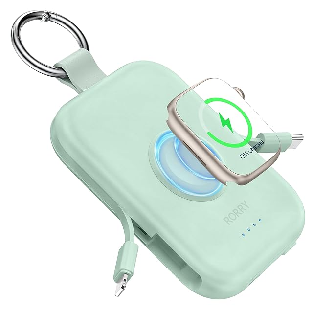 【新色登場】RORRY apple watch 充電器 モバイルバッテリー 5000mAh 2本ケーブル内蔵 【iPhone用+Type-Cケーブル】 アップルウォッチ対応 ワイヤレス充電 同時充電 最大4台同時充電 For Apple Watch ultra2/9/8/7全シリーズに対応 軽量 小型 コンパクト 持ち運び/PSE認証済 for iPhone 15/14/Android グリーン | TREND DESIGN 家電専門店