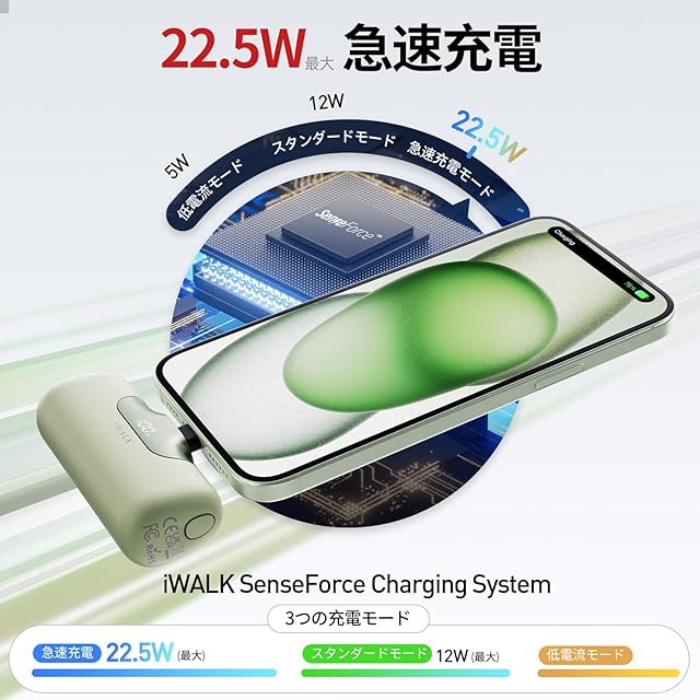 商品名:iWALK モバイルバッテリー 【2025年強化版・22.5W急速充電・5500mAh大容量】 軽量 小型 タイプc Type-C コネクター内蔵 アイウォーク モバイル バッテリー USB-C端子一体型 モバイル充電器 iPhone 16/15/iPad/Android対応 デジタルディスプレイ搭載 持ち運び便利 コンパクト 機内持ち込み可 旅行/出張/停電対策/防災 PSE認証済 (グリーン)
