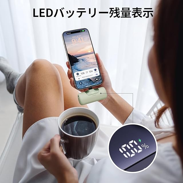 【バッテリー残量表示】LEDディスプレイでモバイルバッテリーの残量が数字で表示され、充電のタイミングが分かりやすく便利です。