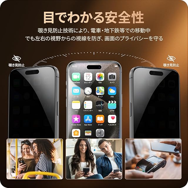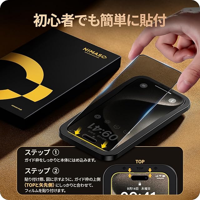 NIMASO ガラスフィルム iPhone15Pro用 覗き見防止 保護フィルム 強 化 ガラス 画面保護 ガイド枠付き 2枚セット アイフォン15プロ(6.1インチ)対応 NSP23K975 | TREND DESIGN 家電専門店