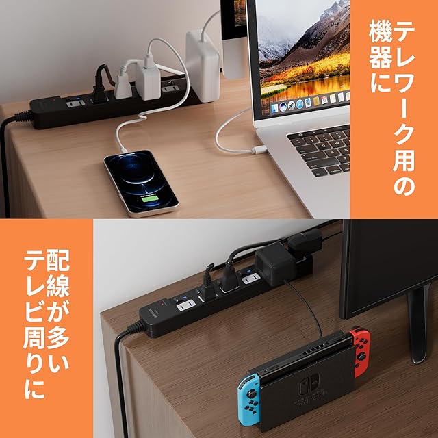 「シンプルで使いやすいデザイン」AC6個口のマルチタップ。用途に合わせてお好きなカラーを選べます。配線が多くなりがちなPCやテレビ周辺におすすめ。周囲の色に合わせると統一感が出て、ごちゃつきがちなコードもスッキリ見えます。スリムでシンプルなデザインは、どんなシーンでも活躍します。安全対策のほこり防止シャッターは感電防止にも役立ち、お子様やペットと過ごす場所にも使えます。