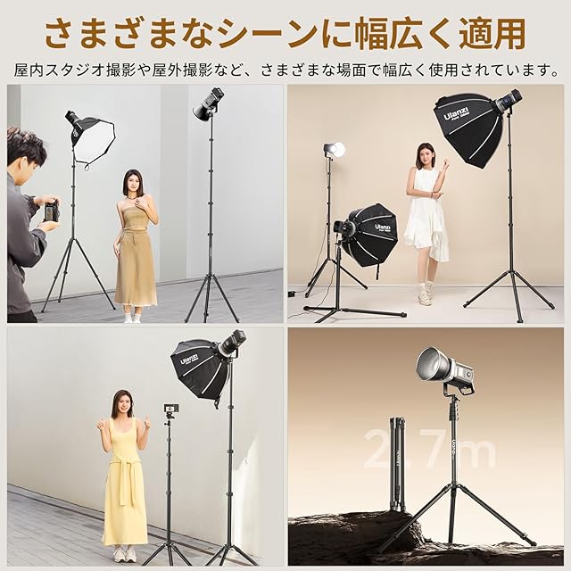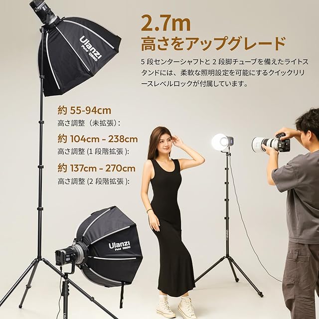 Ulanzi T270 撮影用 ライトスタンド 2.7m カメラ三脚 撮影用スタンド アルミニウム製 軽量 逆向き折り畳み 55-270cm 5段伸縮 1/4ネジ搭載 持ち運び便利 ストロボスタンド リングライト ビデオライト ソフトボックス cobライト などに対応 | TREND DESIGN 家電専門店