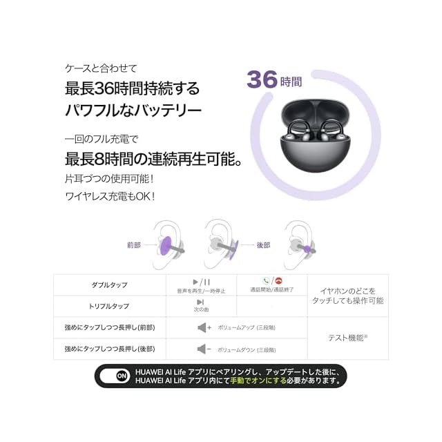 【ロングバッテリー&マルチポイント】1回の充電でイヤホンのみで最大8時間の音楽再生、充電ケース込みで最大36時間の音楽再生が可能。片耳づつでも使用可能です;最大2台のデバイスに同時接続可能。iOS、Android、Windowsのいずれのデバイスでも、オーディオをシームレスに切り替えることができます。