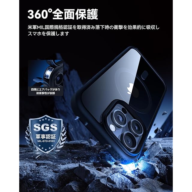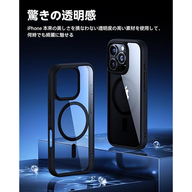 NIMASO iPhone 16 Pro 用 ケース MagSafe対応 黄変防止 マグネット搭載 マグセーフ対応 耐衝撃 米軍MIL規格 SGS認証 PC背面 いPhone16Pro 対応 傷つけ防止 薄型 ワイヤレス充電対応 ストラップホール付き アイフォン16プロ 対応(6.3インチ) スマホケース(氷星シリーズ)ブラック NSC24G1487 | TREND DESIGN 家電専門店