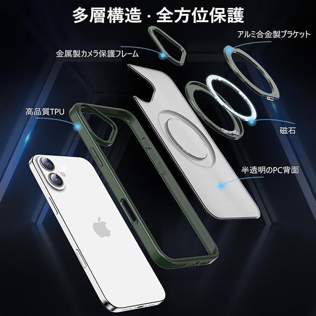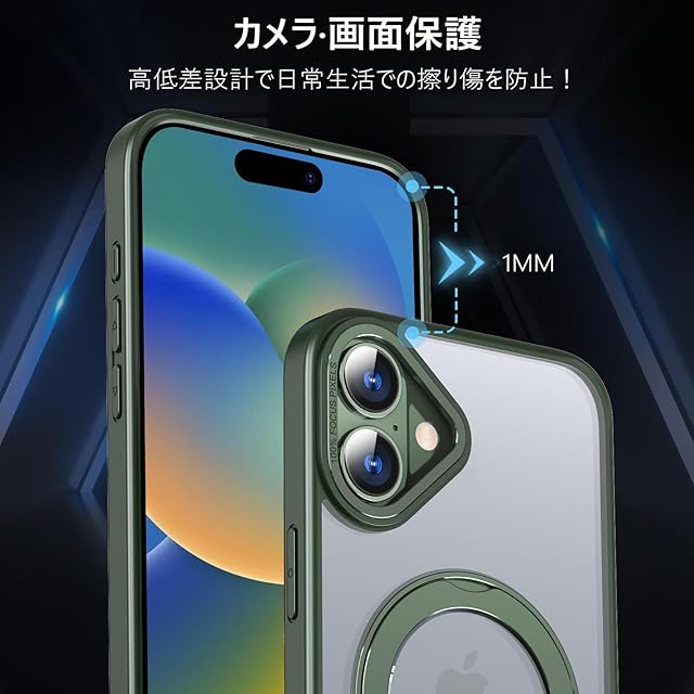 KWATUNG ケース iphone16用ケース magsafe対応 ワイヤレス充電 アイホン16用ケース 耐衝撃 iphone 16 用 ケース 360°回転スタンド 縦横両対応 スマホケース iphone 16 用 マグセーフ リング マグネット搭載 アイフォン16 用ケース 防指紋 米軍MIL規格 iphone16 用カバー 6.1インチ 半透明 マット感 ダークグリーン | TREND DESIGN 家電専門店