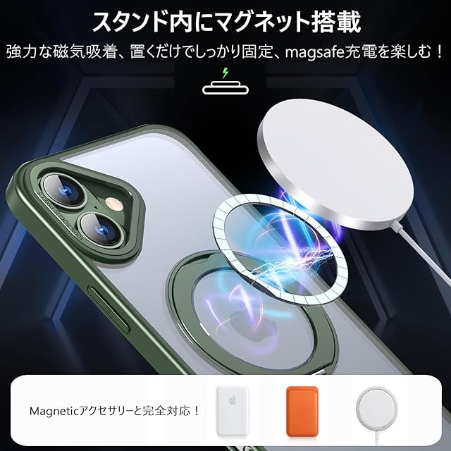 【360度回転スタンド】KWATUNGのスマートフォンケースは360度回転するスタンドが備わっているため、スマートフォンのコンテンツを見たり、ビデオ通話をしたりする際、一つの角度に限定されることがなくなります。縦向きから横向きまで簡単に切り替えることができ、自分に合った視聴や撮影の角度を自在に選ぶことができます。【MagSafe対応・磁力アップグレード】KWATUNGのスマートフォンケース用多機能スタンドは強力な磁石が搭載されており、エネルギーロスなく高速ワイヤレス充電を行うことができます。(ご注意:Magsafe機能付きワイヤレス充電器のみに対応します) こちらのスマートフォンケースを使用すれば、充電ケーブルを抜き差しする必要がなくなり、利便性を体感していただけます。【手触りが良い】こちらのスマートフォンケースは高品質の素材を採用しており、優れた手触り感をご提供することができます。手触りの良いデザインは、快適なグリップを提供するだけでなく、スマートフォンの耐滑性を高め、スマートフォンが手から滑り落ちるリスクを効果的に軽減することができます。