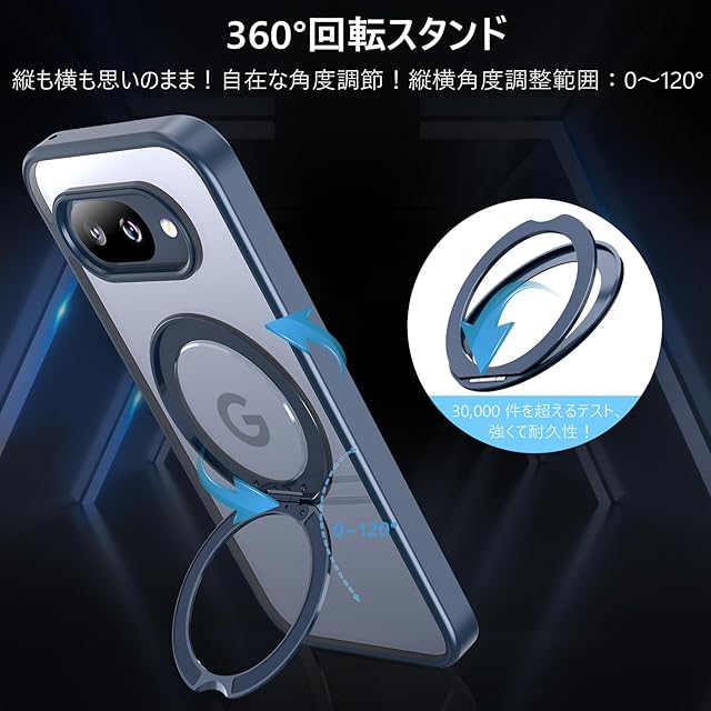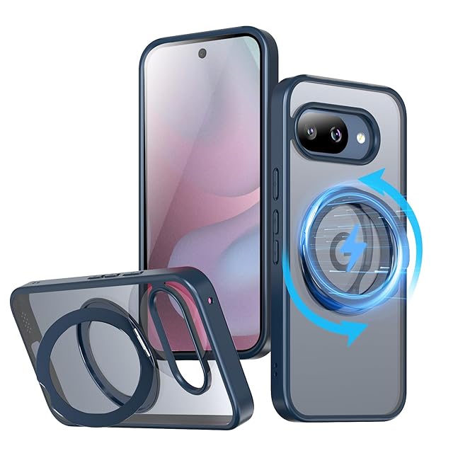 KWATUNG ケース Google Pixel 9a 用 ケース magsafe対応 ワイヤレス充電 グーグルピクセル 9a用スマホケース 耐衝撃 360°回転スタンド 縦横両対応 マグセーフ リング マグネット搭載 防指紋 米軍MIL規格 Pixel 9a カバー 6.3インチ 半透明 マット感 ブルー | TREND DESIGN 家電専門店