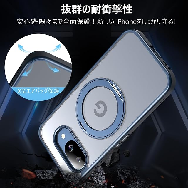 商品名:KWATUNG ケース Google Pixel 9a 用 ケース magsafe対応 ワイヤレス充電 グーグルピクセル 9a用スマホケース 耐衝撃 360°回転スタンド 縦横両対応 マグセーフ リング マグネット搭載 防指紋 米軍MIL規格 Pixel 9a カバー 6.3インチ 半透明 マット感 ブルー