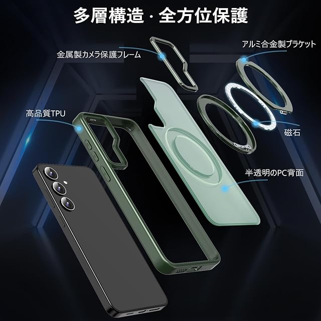 【Magsafe対応·多機能】Galaxy S25 / Galaxy S24 (SC-51E / SCG25)用 ケース(6.2インチ)。ワイヤレス充電やモバイルバッテリーなど全てのMagSafe用アクセサリーにもばっちり対応しています。こちらのGalaxy S24用ケースを使用すれば、充電ケーブルを抜き差しする必要がなくなり、利便性を体感していただけます。【ご注意:この製品はすべての Magsafe デバイスと互換性がありますが、Qi ワイヤレス充電には適していないため、購入する前にこの点を考慮してください】