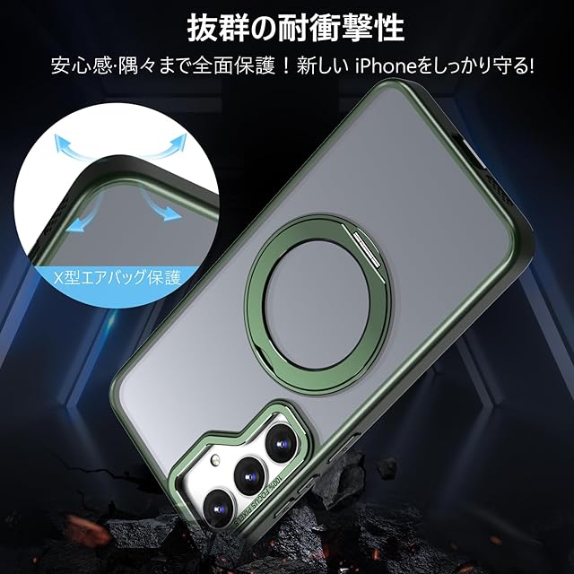 【360度回転スタンド】KWATUNGのスマートフォンケースは360度回転するスタンドが備わっているため、スマートフォンのコンテンツを見たり、ビデオ通話をしたりする際、一つの角度に限定されることがなくなります。縦向きから横向きまで簡単に切り替えることができ、自分に合った視聴や撮影の角度を自在に選ぶことができます。【MagSafe対応・磁力アップグレード】KWATUNGのスマートフォンケース用多機能スタンドは強力な磁石が搭載されており、エネルギーロスなく高速ワイヤレス充電を行うことができます。(➡ご注意:Magsafe機能付きワイヤレス充電器のみに対応します) こちらのスマートフォンケースを使用すれば、充電ケーブルを抜き差しする必要がなくなり、利便性を体感していただけます。【手触りが良い】こちらのスマートフォンケースは高品質の素材を採用しており、優れた手触り感をご提供することができます。手触りの良いデザインは、快適なグリップを提供するだけでなく、スマートフォンの耐滑性を高め、スマートフォンが手から滑り落ちるリスクを効果的に軽減することができます。