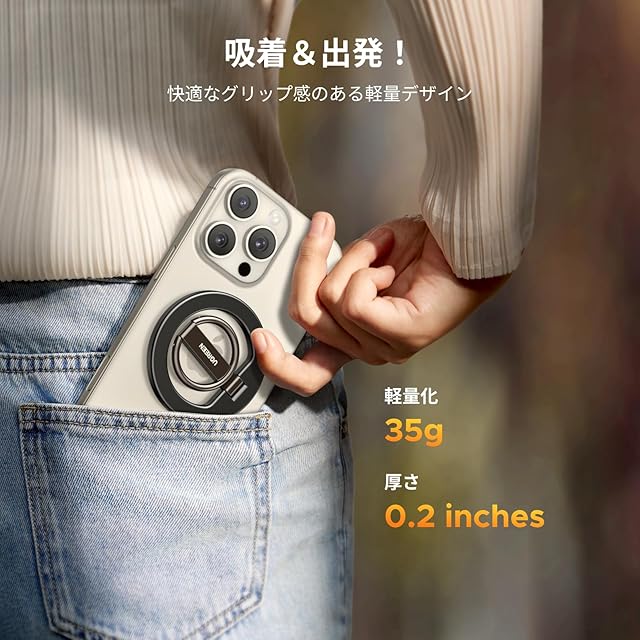 【超軽量&片手操作簡単】UGREEN スマホリングは重量35g・厚さ0.2インチで、ケースをつけても重たくない。片手でも簡単に操作できます。軽量で便利、邪魔にならず、持ち運びにも便利です。高級感のあるスモーキーブラックのデザインで、どのスマホにも合わせやすい。