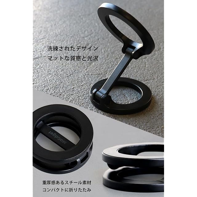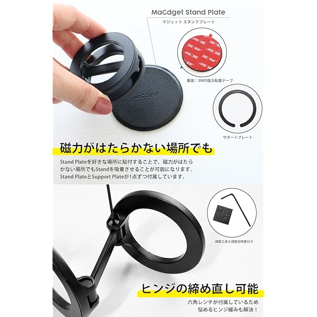 商品名:MaGdget Stand/マジェット スタンド MagSafe対応 マグネット スマホスタンド スマホホルダー マルチスタンド 携帯スタンド 車 車載ホルダー 折り畳み式 角度自由 ヒンジ調整工具付き (Black)