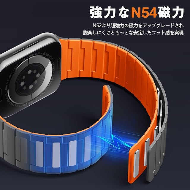 【N54 磁気強化】このアップルウォッチバンドの磁気バックルは強化・アップグレードされており、通常のアップルウォッチベルトよりも強力な磁気グリップを備えています。脱落する心配はありません。同時に、マグネットロックストラップにより、長さ調節も簡単に行え、お客様の手首のサイズに合わせて調整できます。
