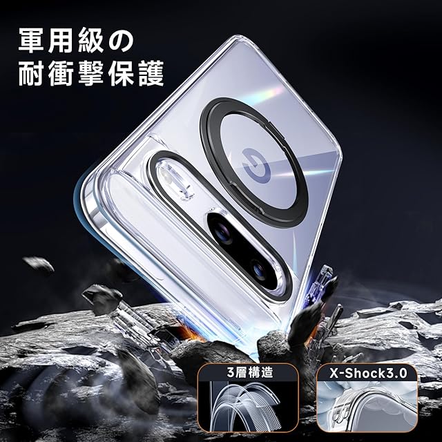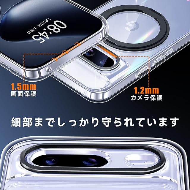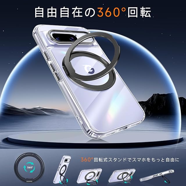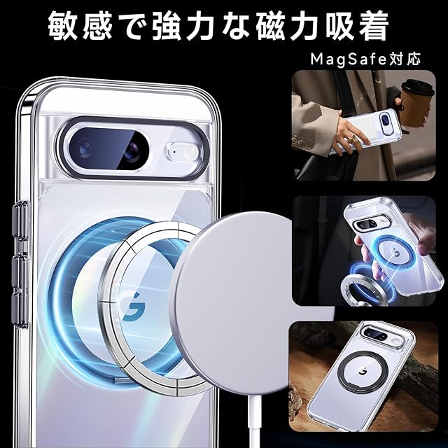MagSafe対応でワイヤレス充電もスムーズに行え、360°回転リングスタンドで縦横両対応。映画鑑賞やオンライン学習に最適です。MIL規格準拠の高耐衝撃性で、Google Pixel 8をしっかり守ります。高硬度ポリカーボネートとTPU素材を採用し、衝撃や傷から守り、便利なストラップホールで持ち運びも楽々。クリアデザインで黄ばみ防止にも配慮。