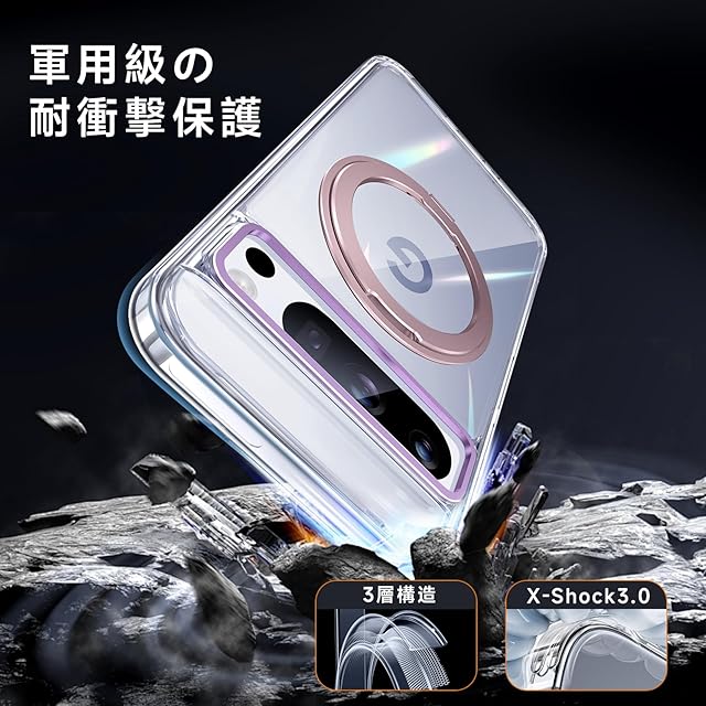 【米軍MIL規格準拠・高耐衝撃性能】米国国防総省の耐衝撃試験「MIL-STD-810G」に準拠し、耐衝撃性能が従来比20倍アップ!スマホの落下時に特に衝撃を受けやすい四隅には、衝撃を分散するクッション構造を採用。また、ケースの側面には柔軟性の高いTPU素材を使用し、耐衝撃性を強化。Google Pixel 8 Proをしっかりと守ります。