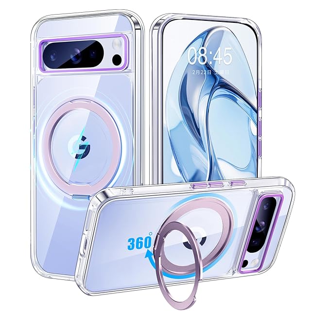 【米軍MIL規格・Magsafe対応】Google Pixel 8 Pro 用 ケース MagSafe対応 リング360°回転スタンド機能 縦横両対応 半透明 黄ばみ防止 ワイヤレス充電 レンズ保護 耐衝撃 携帯カバー 6.7 インチ マグネット搭載 車載ホルダー マグセーフ対応 おしゃれ(クリアピンク) | TREND DESIGN 家電専門店