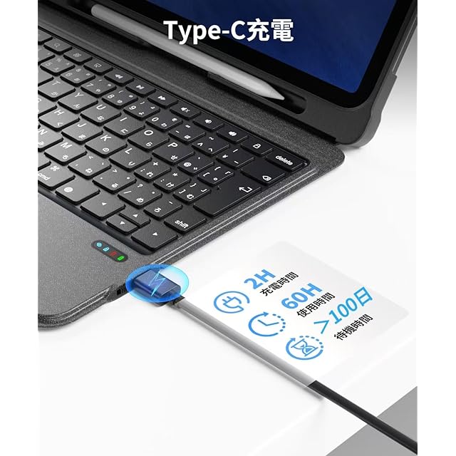 ✅【業界革新JIS標準日本語配列】ipad 9世代 ケース キーボード はJIS規格準拠の日本語配列を採用し、逆L型Enterキー、左右shiftキー、左右cmdキー搭載、より快適にタイピングできます。また、キーが静音性に優れた素材を採用し、静音性を70%アップしました。安静なカフェや図書館などでも周囲を気にせず利用できます。
