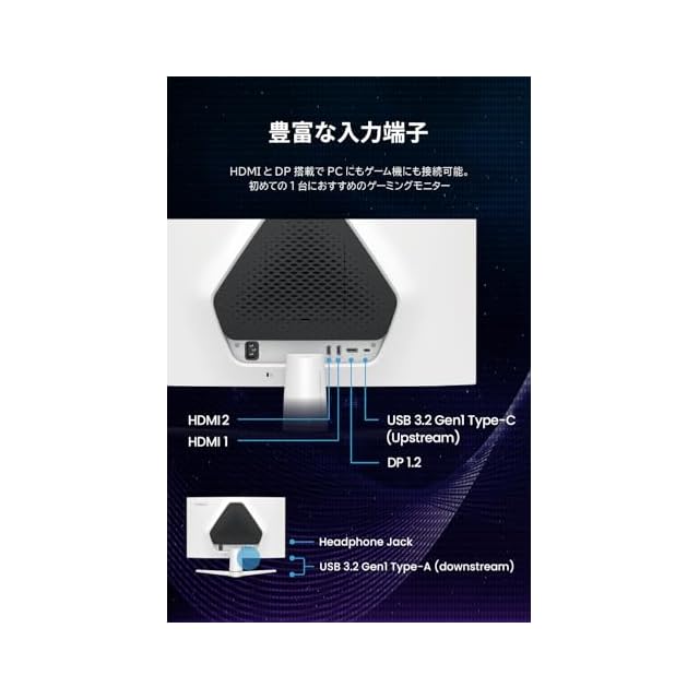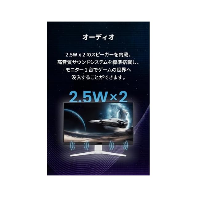 近未来的な筐体デザイン、2.5W×2の高音質treVoloスピーカー内蔵で迫力のあるオーディオ体験を提供、USBハブ搭載でマウスやキーボードなどの接続も可能