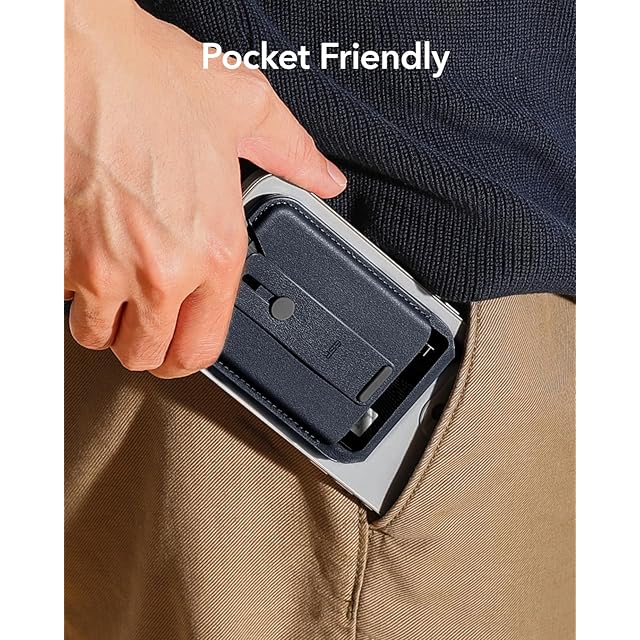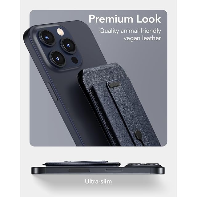 [ESR] 新登場 収納量アップ MagSafe カードケース 5枚カード収納 RFIDブロッキング ホルダー ス マホスタンド MagSafe対応ウォレット 調節可能なスタンド 財布 iPhone 16/15/14/13/12専用磁気ウォレット iPhone 13/12 mini非対応 ヴィーガンレザー Find My「探す」非対応 ダークブルー