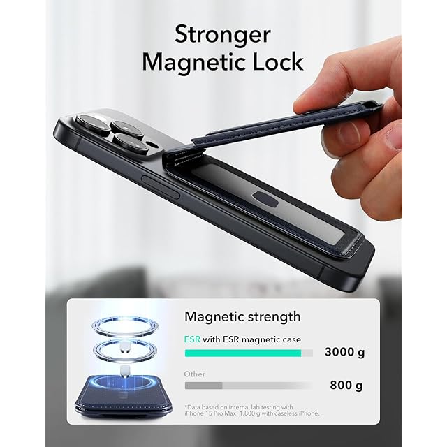 アップグレードされた強力な磁気ロック:3,200gの保持力(ESR磁気ケース付き)により、公式の磁気財布よりも275%強力で、ウォレットスタンドをしっかりと固定します。Find Myには対応していません。