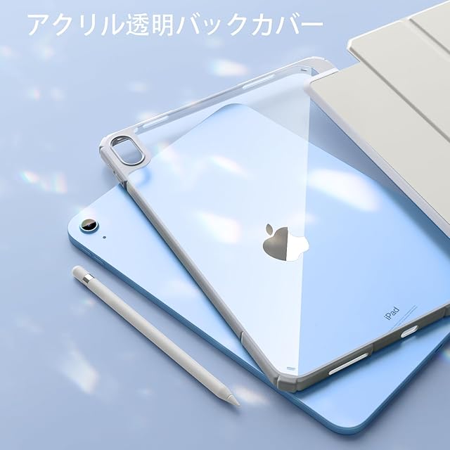 【クリアバックカバー】この対応iPad 11世代 ケースの背面板は高透明度のアクリル素材を使用しており、対応iPad本体のロゴやカラーを美しく表示できます。また、写真やステッカーなどを挟んで、自分だけのユニークな対応iPadを作成することができます。