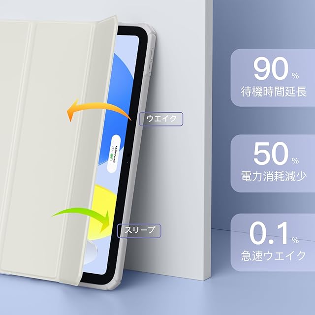 【オートスリープ/ウェイク機能】対応iPad 第11世代カバーを開閉すると、デバイスが瞬時に起動およびスリープモードに切り替わります。このフレキシブルなオートスリープ/ウェイク機能は便利で、バッテリーの電力を節約し、対応iPadの寿命を延ばすのに役立ちます。また、充電ケーブル、イヤホン、カメラ、電源ボタンなど、さまざまな操作に対応するための精密な穴がケースに加工されており、ケースを装着したままでタブレット本体を操作できます。