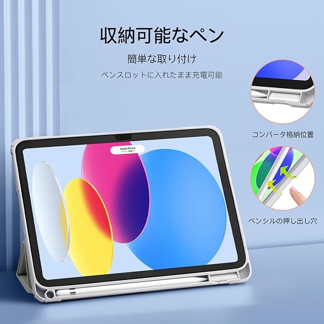 【ペンシル収納機能搭載】対応iPad ケース 第11世代を装着したままで、Pencil 1のホルダーと収納スペースが備えられています。これにより、Pencilの紛失を防ぐことができます。ご注意:Pencilは含まれておりませんので、別途ご購入が必要です。