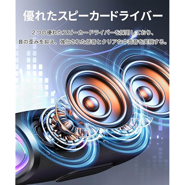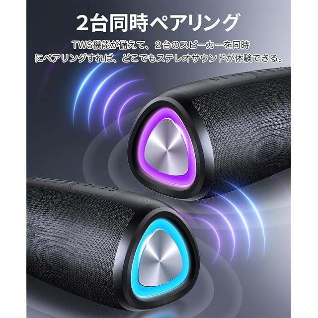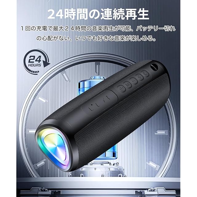 商品名:Bluetooth スピーカー【2025革新型】ワイヤレススピーカー 24時間連続再生 Bluetooth 5.3 Type C充電式 IPX7防水 TWS機能 LEDライト付き マイク内蔵 ハンズフリー通話 小型 持ち運びやすい お風呂 スマホ PC 車用 日本語取扱説明書 (ブラック)