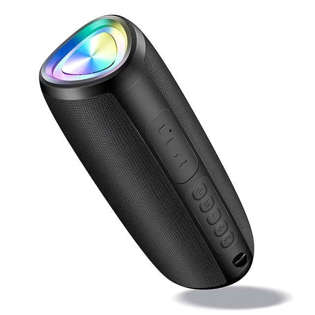 Bluetooth スピーカー【2025革新型】ワイヤレススピーカー 24時間連続再生 Bluetooth 5.3 Type C充電式 IPX7防水 TWS機能 LEDライト付き マイク内蔵 ハンズフリー通話 小型 持ち運びやすい お風呂 スマホ PC 車用 日本語取扱説明書 (ブラック)
