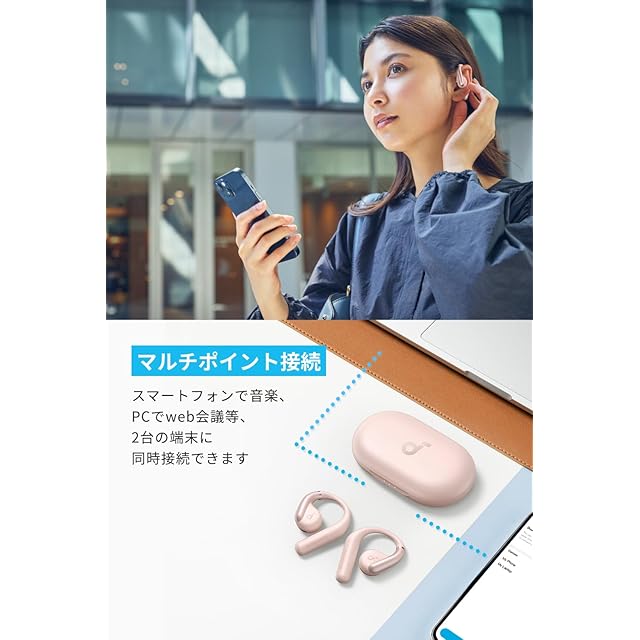 商品名:Anker Soundcore AeroFit(Bluetooth 5.3)【オープンイヤー型ワイヤレスイヤホン / IP57防塵防水規格/ 最大42時間再生 / マルチポイント接続/PSE技術基準適合】 ピンク