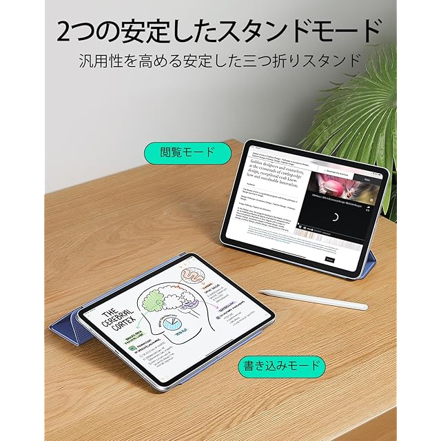 【スリムで安定】: 軽量設計で持ち運びしやすく、前面の三つ折り構造カバーが安定したスタンドとして、閲覧、ライティング、絵描きに使用できます。