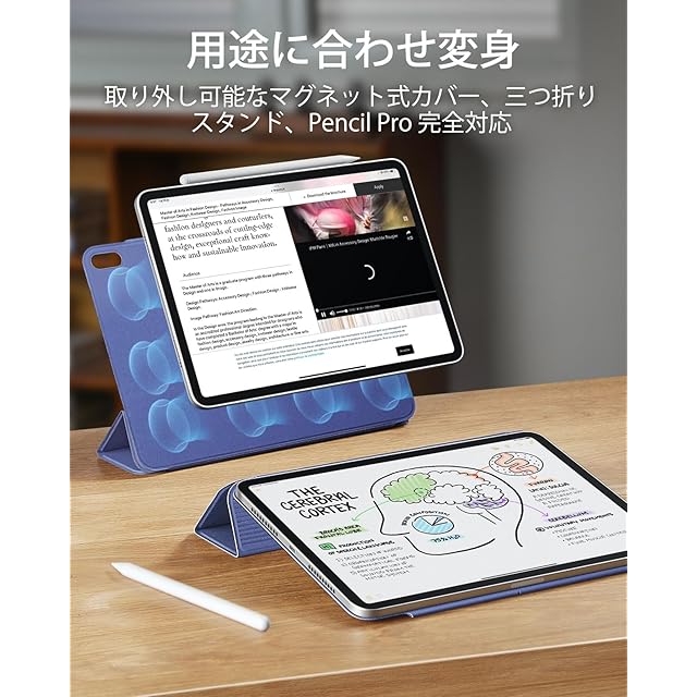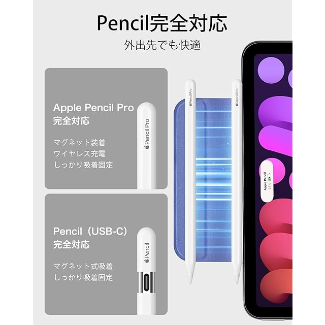 【Pencil Pro/USB-C対応】:Pencil ProとUSB-Cを完全に対応し、マグネット充電用のくぼんだサイドの溝と、Pencilをしっかりと固定するマグネットクラスプを備えています。