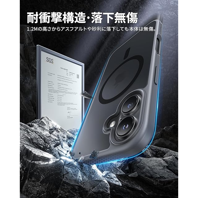 【米軍規格SGS認証・超強耐衝撃性】世界で有名な米国防総省が規定する米軍採用品規格「MIL-STD-810H」認証を取得済みです(認証番号:GZMR220802602301)。カバーの縁はスマホの液晶画面より1.4mm高く、カメラレンズより0.6mm高い、併用の保護ガラスフィルムで平置きしても画面は接触しない、細部までの保護も配慮され、より一層な安心感を与えられます。コンクリートの地面に厚さ5mmの合板を敷き、高さ1.2mから合計26回、違う角度から落下させる実験をしましたが、本体に傷はつきませんでした。高い耐衝撃性を誇り、スマホを全方位からしっかりと守ります。