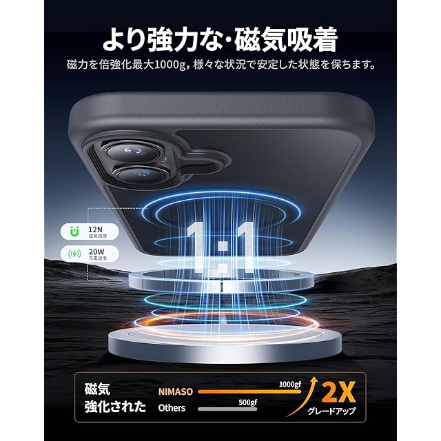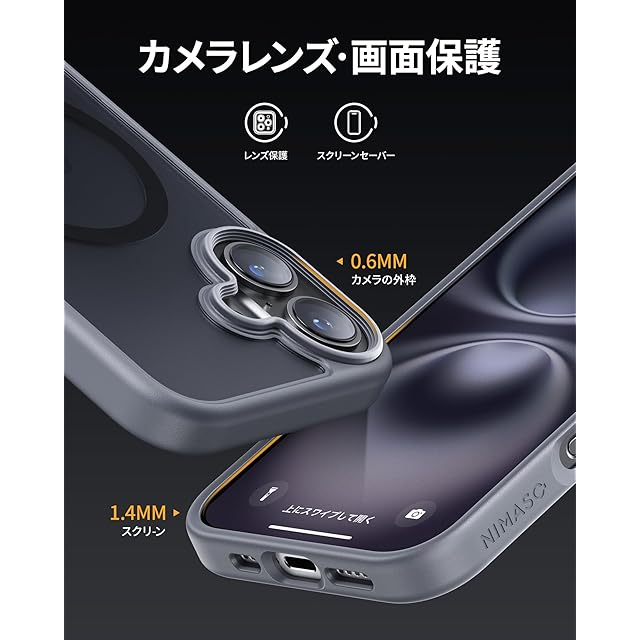 NIMASO iPhone16用 ケース MagSafe対応 スマホケース マグセーフ対応 カバー 滑り止め マット仕上げ いPhone16対応 全面保護 耐衝撃 米軍MIL規格取得 ワイヤレス充電 ストラップホール付き 携帯スマホケース アイフォン16対応 (6.1インチ) グレー (黒羽シリーズ)NSC24G1452 | TREND DESIGN 家電専門店