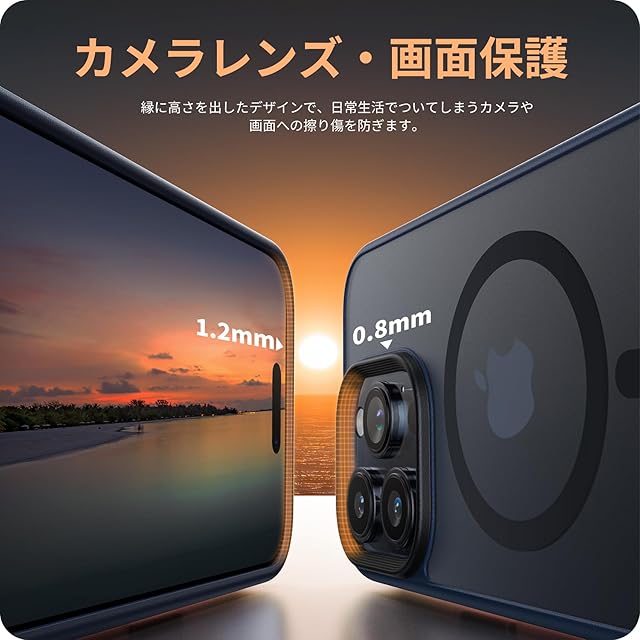 【細部までも保護・安心感】カバーの縁はスマホの画面より1.2mm高く、カメラレンズより0.8mm高い仕様です。併用の保護ガラスフィルムで平置きしても画面は接触しません。細部までの保護も配慮され、より一層な安心感を与えられます。