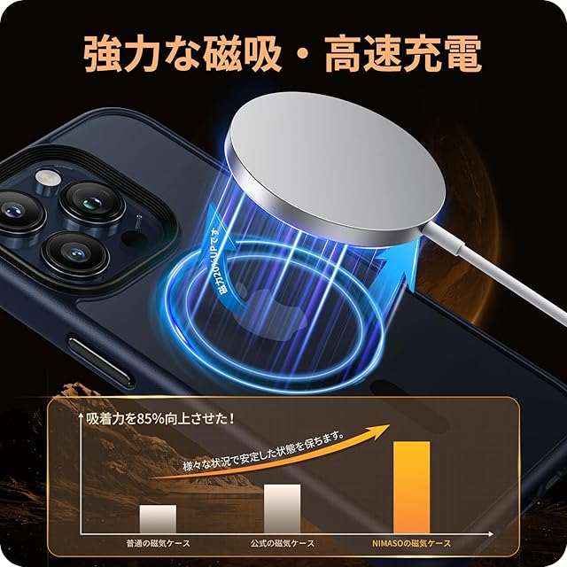 【MagSafe対応・強力な磁吸】スマホケース内部に38個の強力なN52マグネットを搭載しており、一瞬でピッタリと高速充電を実現!いくら振っても落ちないので、充電しながらゲームをやっても問題なし!また、ワイヤレス充電やモバイルバッテリー・車載ホルダー・スタンド・リングなど全てのMagSafeアクセサリーにもばっちり対応しています。