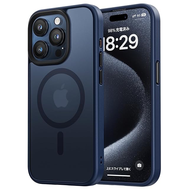 商品名:NIMASO ケース MagSafe 対応 iPhone15Pro 用 ケース マグネット搭載 マグセーフ対応 カバー 滑り止め マット仕上げ 全面保護 耐衝撃 米軍MIL規格取得 ワイヤレス充電 ストラップホール付き アイフォン15プロ(6.1インチ)対応 スマホケース ブルー(黒羽シリーズ)NSC23K878