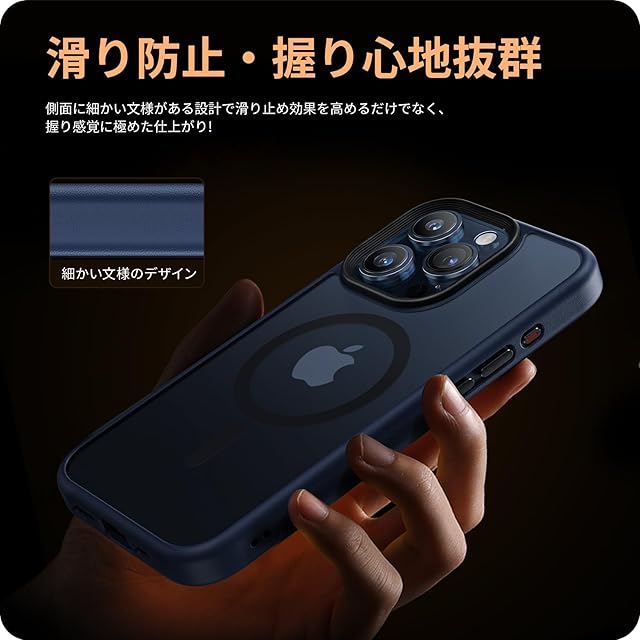 NIMASO ケース MagSafe 対応 iPhone15Pro 用 ケース マグネット搭載 マグセーフ対応 カバー 滑り止め マット仕上げ 全面保護 耐衝撃 米軍MIL規格取得 ワイヤレス充電 ストラップホール付き アイフォン15プロ(6.1インチ)対応 スマホケース ブルー(黒羽シリーズ)NSC23K878 | TREND DESIGN 家電専門店