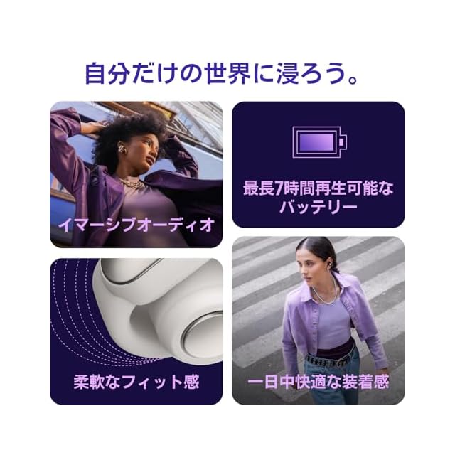 どこででも音楽を満喫:ボーズのイマーシブオーディオを搭載した立体感のある空間オーディオを実現するこのBluetoothイヤホンは、快適な着け心地とスタイリッシュなデザインを両立。サウンドに包まれているような、よりリアルなリスニング体験を実現します。
