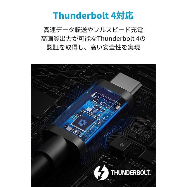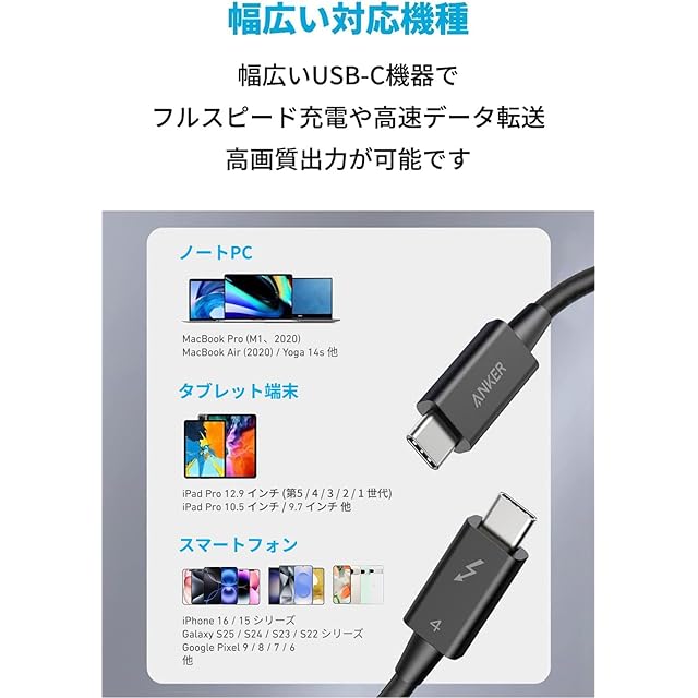 商品名:Anker USB-C & USB-C Thunderbolt 4 100W ケーブル 0.7m ブラック 100W出力 8K対応 40 Gbps 高速データ転送 iPhone 16 / 15 MacBook Air Pro iPad Pro/Air 他対応