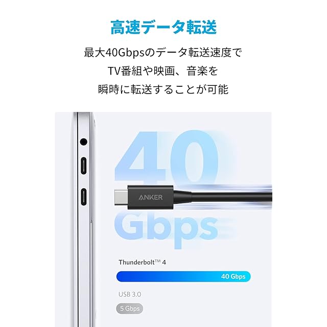 高速データ転送:最大40Gbpsのデータ転送速度により、TV番組や映画、音楽を瞬時に転送することが可能です。