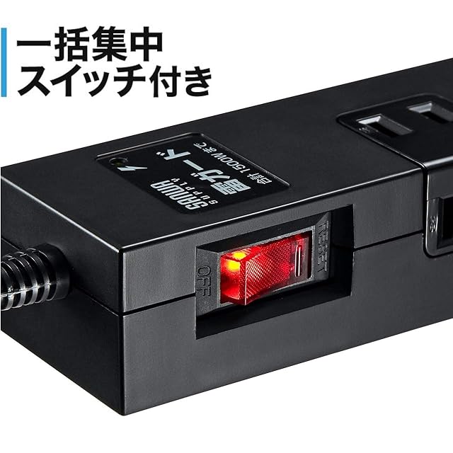 一括集中スイッチ付きで、接続した機器の電源をまとめてON/OFF可能。