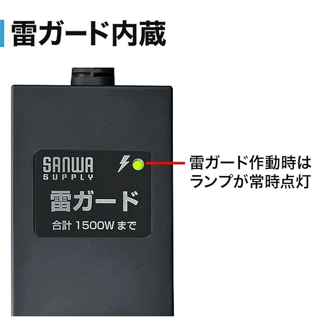 雷ガードを内蔵しており、雷から機器をガード。雷ガード作動中確認ランプ付き。