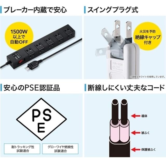 ブレーカーを内蔵しており、許容量をオーバーした場合ブレーカーが作動し事故を防止。