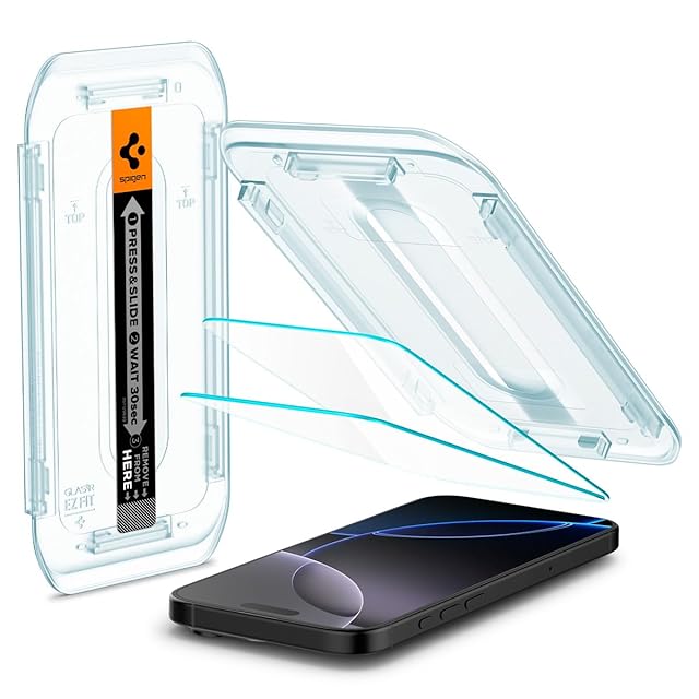 Spigen iPhone 16 Pro ガラスフィルム 9H硬度強化ガラス 貼り付けキット付き iPhone16Pro対応 保護フィルム ナノコーティング 飛散防止 2枚入 EZ Fit AGL07928 | TREND DESIGN 家電専門店